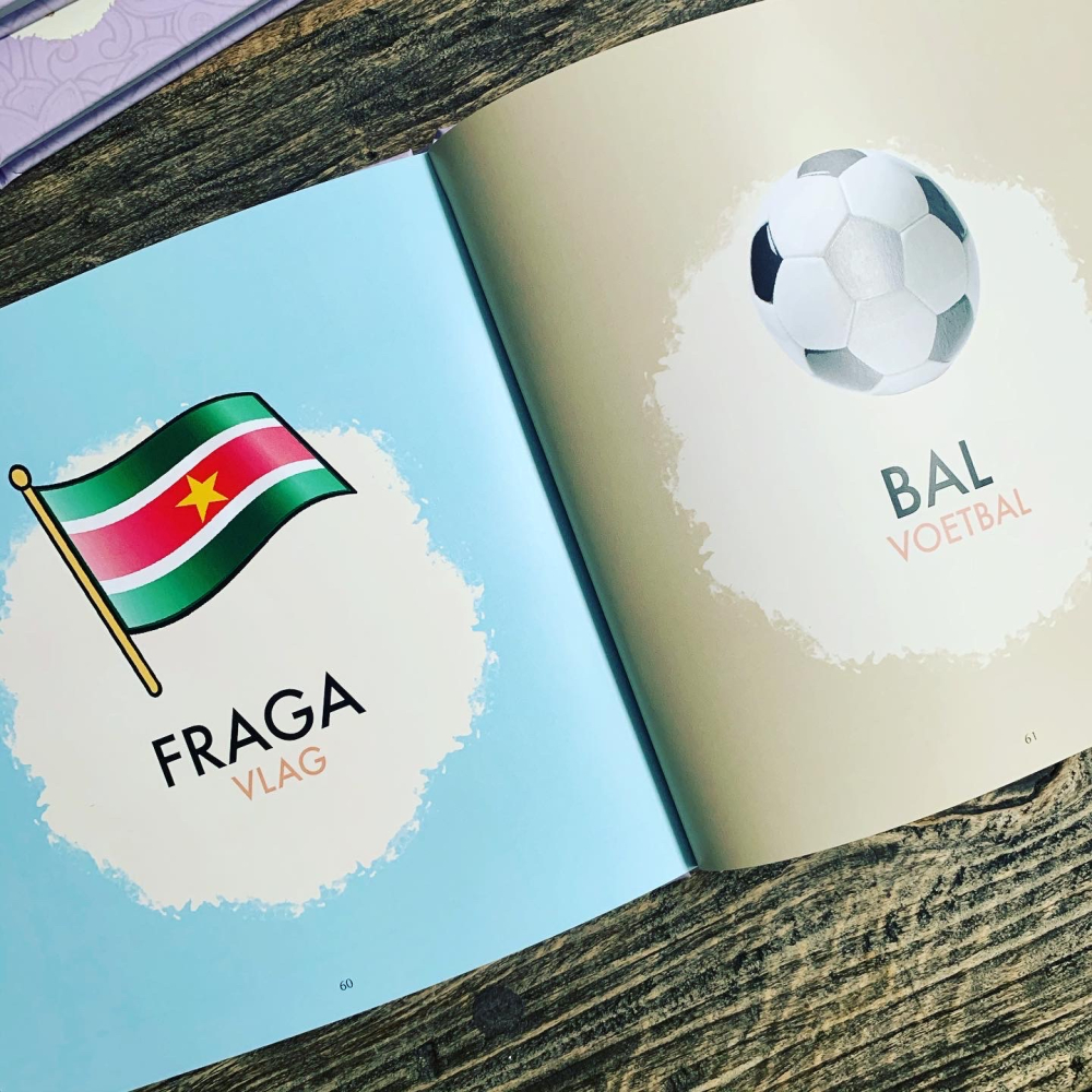 Met dit grote kijk & woordjes boek leer je spelenderwijs je eerste Surinaamse woordjes. Dit kleurrijke boek staat 64 pagina's vol met eerste woordjes van alledaagse dingen. Je maakt kennis met woordjes voor dieren, eten cijfers en nog veel meer.