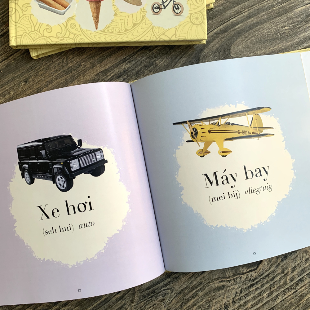 Met dit grote kijk & woordjes boek leer je spelenderwijs je eerste woordjes. Dit kleurrijke boek staat 64 pagina's boordevol plaatjes van alledaagse dingen. Je maakt kennis met Vietnamese woordjes voor dieren, eten, cijfers en nog veel meer.